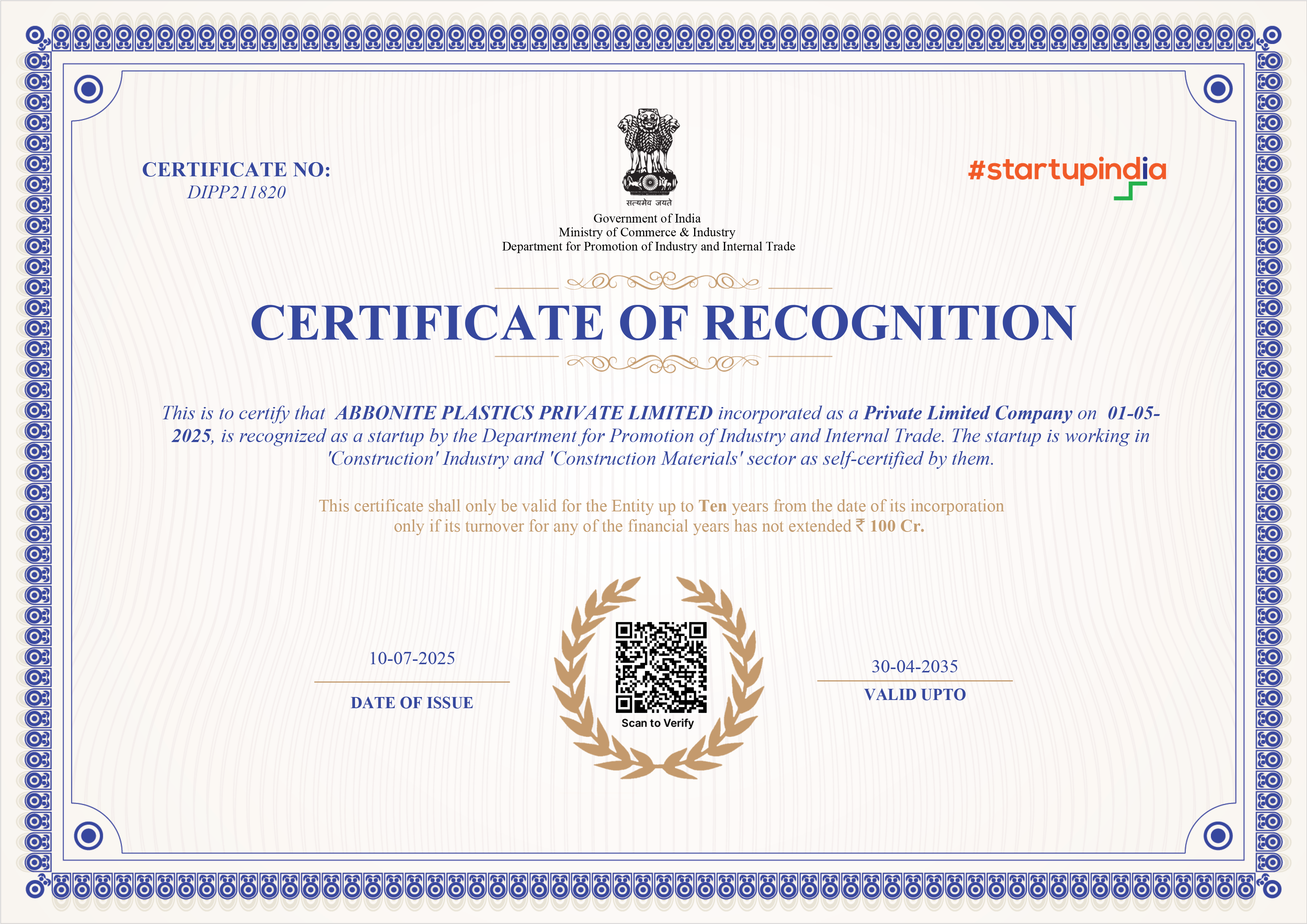 Startup Certificate - Abbonite